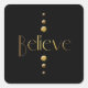 3 Dot Gold Block Believe & Black Background Square Sticker