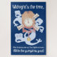 3 Scared ghosts fly out of clock at the stroke of midnight! Text: Midnight's the time...When the ghouls come out. They frighten and scare; While the pumpkins pout! On midnight blue background!