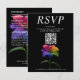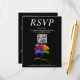 A multifunctional enclosure card from the Technicolor Love collection, designed to deliver everything guests need in one beautifully coordinated piece. The bold rainbow lily anchors the design with its vibrant spectrum, creating a striking contrast against the dark backdrop and tying the card seamlessly into your full suite.