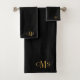 3 Initial Monogram Gold Script Name Black Bath Towel Set