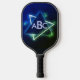 3 Initial Monogram Letter Blue Green Space Shape Pickleball Paddle