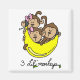Three adorable little monkeys hang out in the bend of a big yellow banana on 3 Li'l Monkeys T-shirts, bodysuits, cards, stickers, tote bags, and other monkey clothing and gift items.