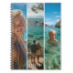 Create your own family triptych photo collage on a blank notebook. Add three images on the design that look great on a thin vertical shape. Souvenir photos from trips to places like the Grand Canyon or tall trees at Lake Tahoe will look great in a long vertical format. You can even use the same photo more than once, just adjust the placement so that it focuses on a different area. Add a name or monogram text to create a personalized gift.