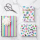 3 Matching Colourful & Cool Monster Patterns Wrapping Paper Sheet
