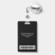 Easily personalise this Custom Employee Name Badge with Photo, Scan Bar Code and 3 Multiple business logos. You can upload 3 different company logos, perfect for partnerships and sponsors. A simple business design in total black and white colours fully customisable in front and back sizes, sans-serif basic and modern fonts and a professional and clear look. Avaiable with lanyard, metal clip or with retractable. No minimum order.