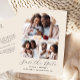 This simple, minimalist Save the Date postcard features an arch-shaped collage of three photos above the words "Save the Date" in elegant black handwriting script, followed by the couple's names, wedding date and city in sans serif font on a beige background. Add your return address along with additional details on the back.