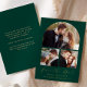 This simple, minimalist Save the Date card features a 3-photo collage arch above the words "Save the Date" in elegant real gold foil handwriting script, followed by the couple's names, wedding date and city in sans serif font on an emerald green background. Add a more detailed message with additional information on the reverse.