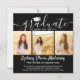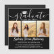 Share the joy of a high school or college graduation with custom 3 photo collage black and white square magnetic announcements. The pictures and wording on this template are simple to personalise, and the colours are easy to change with the Zazzle design tool. Include any details of your choice, such as party invitation info, special honours, degree title, favourite inspirational quote, graduate's contact info, or plans for the future. The magnetic backing makes them easy for family and friends to display. The modern design features a mortar board cap, elegant script calligraphy, traditional typography, and three photos of your choice, such as senior pictures or images from the commencement ceremony. This chic magnetic graduation card is a stylish and unique way to announce a special day celebration. Congratulations to the graduate!