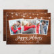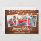 3 Photo Brush Script Rustic Wood Lights Holiday Card