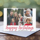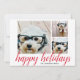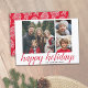 3 Photo Christmas Script Red Damask Happy Holiday Card