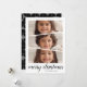 Use three horizontal or square photos --- Subject centred. Make a unique and trendy Merry Christmas greeting with a mod black and grey pattern on the back. The greeting is shown in a modern, bounce calligraphy that can be changed to meet your favourite saying. If you need to move anything around, click on the customise button to make changes.