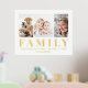 Add an elegant personalised touch to home decorations with a unique custom photo collage and quote gold foil print. Picture and all wording on this template are simple to personalise, including text that reads "Every Family Has a Story • Welcome to Ours" (IMAGE PLACEMENT TIP: An easy way to centre a photo exactly how you want is to crop it before uploading to the Zazzle website.) The modern white and gold overlay design features real metallic foil, three images of your choice, and stylish classic vintage typography. This customised wall art welcome sign with sentimental saying makes a thoughtful keepsake gift idea for relatives. What better way to decorate your home than with your most cherished family memories.