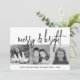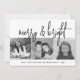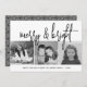 3 Photo Collage Script black white Merry Bright Holiday Card