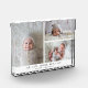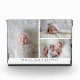 Modern and minimal newborn keepsake photo block featuring 3 photo collage on a white background. You can add your baby's photo with birth stats information.
