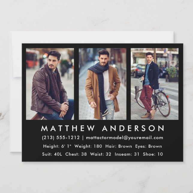 3 Photo Model Actor Comp Card Black