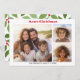 3 Photo Modern Minimal Script Botanical - Red Holiday Card