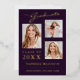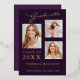 Beautifully elegant 3 photo graduation announcement cards. Featuring modern text with calligraphy script in your choice of gold, silver or rose foil. The design is complimented with a stylish purple background on the front with a lighter purple shade on the back. The back of the card offers a personalised announcement text space for that special graduate. To see more items like this, visit my store here at "www.Zazzle.com/LakeViewCardCo". Thanks