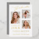 Beautifully elegant 3 photo graduation announcement cards. Featuring modern text with calligraphy script in your choice of gold, silver or rose foil. The design is complimented with a white background on the front and stylish grey on the back. The back of the card offers a personalised announcement text space for that special graduate. To see more items like this, visit my store here at "www.Zazzle.com/LakeViewCardCo". Thanks