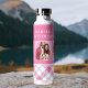 3 Photo Preppy Pink Plaid Modern Girly Custom Name Water Bottle