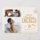 3 photos Gold Glitter First Christmas Engaged Holiday Card