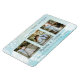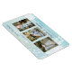 Save the Date magnet featuring 3 of your own photos framed by a pastel teal turquoise floral design.
