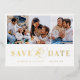 3 Photos White & Gold Foil Save the Date Invitation Postcard