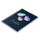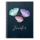 A personalized notebook with a pretty design. 3 watercolor butterflies, painted pink, purple and green. Dark blue watercolor background.
