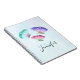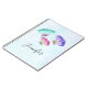 A personalised notebook with a pretty design. 3 watercolor butterflies, painted pink, purple and green. A light blue watercolor background with hints of light pink.