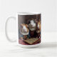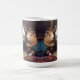 This mug features an image that offers a whimsical twist on classic renaissance portraiture. It features three stately guinea pigs, each adorned with miniature golden crowns, exuding an air of nobility and wisdom. They are attired in sumptuous, renaissance-inspired robes, with rich hues of blue and gold that highlight their fur patterns and colors. Set against a moody, ornate background that hints at the grandeur of a bygone era, this piece strikes a balance between majestic elegance and charming quirkiness. generativecontent