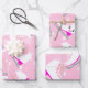3-SET Personalized Ice Skating Patterns Pink Gift Wrapping Paper Sheet