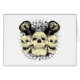 3 evil looking skulls and crossing are printed on high quality t-shirts and gifts for any rock n roll fan!