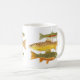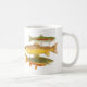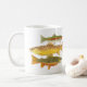 Three most common trout on a mug. Watercolors of the Rainbow, brook and brown trout by Thom Glace