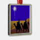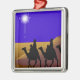 The Three Wise Men on their journey to visit baby Jesus bringing gifts of gold, myrrh, and frankincense.