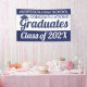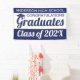 Do you work at a school and want to celebrate your graduating classes achievements on school grounds? Do you represent a housing development with a school within and want to celebrate the graduating class at the entrance of your community? Then this 3' x 5' blue and white "Congratulations Graduates" banner is for you! This celebration graduation banner is fully customisable from the text to the colour combinations. You can even personalise the banner with the school colours. All graduate banners are hemmed and welded for a clean finished edge. This class of 2024 banner is set as an "indoor banner" by default. For outdoor use, choose the "outdoor with grommets" option before checkout for easy installation on any surface.