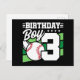 3 Year Old Baseball Party Theme 3rd Birthday Boy Postcard
