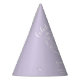 3rd crystal wedding anniversary party hats. The design features white script typography on light crystal toned purple grey background with your names and the words celebration of 3 years of love in script style font and a line art heart gemstone. Personalise with your names and anniversary wedding dates. The third wedding anniversary is associated with the gemstone crystal and the heart symbolises love. Other matching crystal and other gemstone wedding anniversary items available. Line art and design by www.mylittleeden.com on zazzle.