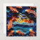 The koi fish in this illustration are beautifully rendered in three dimensions, and the blue background is a perfect foil for their vibrant colours. The composition is pleasing and peaceful, making it a perfect choice for a calming image.