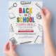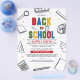 Tell everyone about your Back To School Supply Drive with this minimalist creative flyer featuring 3D colourful typography, "Back to School", wavy lines background, and fun illustrations of school supplies with yellow stars.