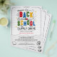 Tell everyone about your Back To School Supply Drive with this creative flyer featuring 3D colourful typography, "Back to School", wavy lines background, torn paper, and fun illustrations of school supplies with yellow stars.