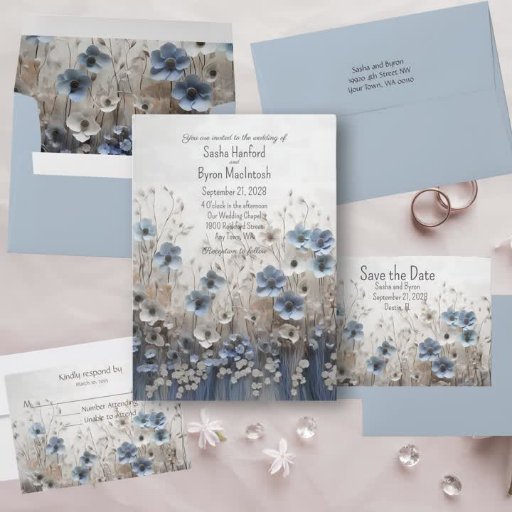 3D Blue Flower Garden Mother of the Bride Accessory Pouch