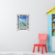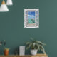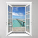 3D boardwalk Ocean view, fake window scene, for a windowless office wall. Fun, very realistic optical illusion scenic poster for an office or study wall.