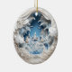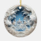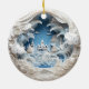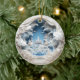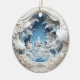Beautiful 3D blue and white Christmas winter wonderland with snowy cut out effect shapes, castles and trees make a very pretty fairy tale Christmas scene ornament.