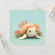 This heart-melting design features an incredibly adorable sea turtle with a sweet, minimalist smiling face and soft pink rosy cheeks. Rendered in a high-quality 3D clay style, the turtle has a smooth, matte cream-colored body and a large, multi-toned peach and orange shell. The character is nestled into a vibrant underwater garden, surrounded by hand-sculpted orange coral branches and clusters of textured sea sponges in soft olive green. Set against a clean, solid teal background, the overall "kawaii" aesthetic is modern, bright, and full of gentle charm, making it an irresistible choice for any fan of marine life and whimsical character art. This cheerful turtle postcard is a wonderful choice for sending a "shellebration" birthday wish or a playful summer greeting to a friend who loves the ocean. You might choose to use this cute animal card for an under-the-sea themed baby shower invitation or to celebrate a child's pool party with your family members. It also makes a precious decorative piece for a nursery wall or a bright addition to a beach house guest book as a small token of happiness. This versatile design is also an excellent choice for aquarium event announcements, marine biology club invites, or as a heartwarming way to share a short message of joy for any situation or event.