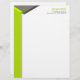 Professional business letterhead template for architects / designers with isometric 3D cube design elements on lime green and grey.