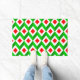 This doormat has a mid-century modern design of cubes in Christmas colors.