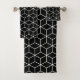 3D Cubes Geometric White Line on Black Pattern Bath Towel Set