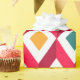 This wrapping paper has a mid-century modern design of cubes in retro colors.