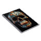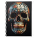 Capture your thoughts, sketches, and notes in vibrant style with this eye-catching notebook featuring a striking 3D Day of the Dead skull design. The cover showcases a black base, richly adorned with intricate floral and scroll patterns in contrasting metallic gold, teal, and copper, embodying the spirit of Día de los Muertos. The metallic accents give the skull a dimensional, almost embossed appearance, making these culturally significant details truly pop. This unique notebook is perfect for adding an artistic and festive touch to your everyday writing or makes a thoughtful gift for those who appreciate unique and culturally inspired designs.