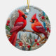 3D Embroidered Look Cardinal Red Birds Christmas Ceramic Ornament