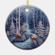 3D Embroidered Look Deer Winter Forest Landscape Ceramic Ornament